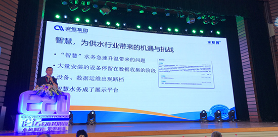 王总的发言获得了很多与会者的关注和认同,他讲到水联网将以懂水司的需求,为水司提供解决痛点的服务,与水司共同建设解决实际痛点的智慧化落地方案。